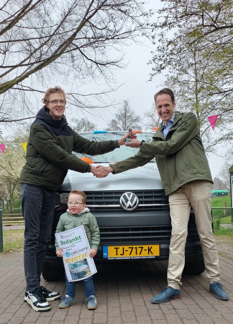 De Obadjaschool heeft vrijdag 11 april een eigen schoolbus gekregen. Een groep ondernemers uit Rijssen hebben gezamenlijk een bus voor 9 personen aangekocht en deze aan de Obadjaschool geschonken. De schoolbus wordt gebruikt voor vervoer van leerlingen naar onder meer stage en ook bij excursies en het schoolkamp. Met de leerlingen werd vrijdag het busje op feestelijke wijze in gebruik genomen. De Obadjaschool is een school voor Cluster 3 waar leerlingen met een verstandelijke beperking onderwijs krijgen. Op de foto is te zien hoe leerling Nicolas de sleutel symbolisch overhandigt aan meester Harbers, directeur van de Obadjaschool.